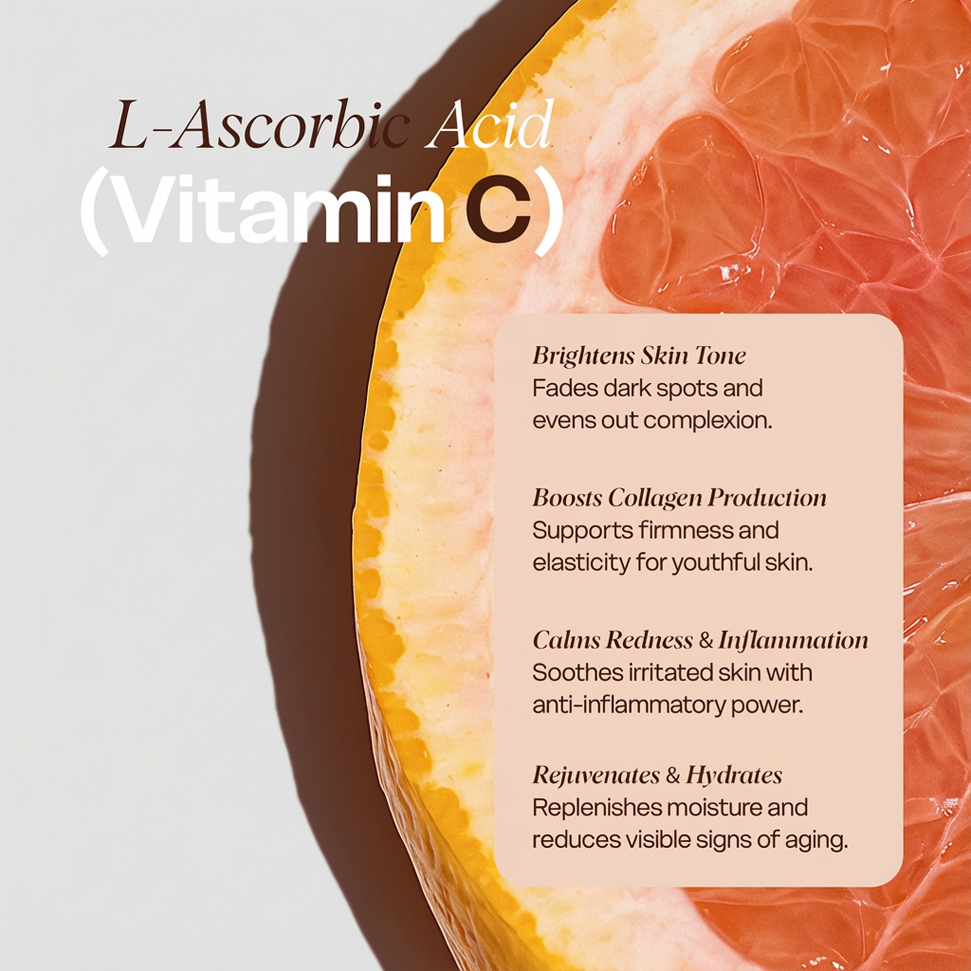 Eye Serum- Water, Caprylic/Capric Triglyceride, Squalane, Helianthus Annuus (Sunflower) Seed Oil, Jojoba Esters, Vegetable Glycerin, Propanediol, Xanthan Gum, Lecithin, Sclerotium Gum, Pullulan, Carthamus Tinctorius (Safflower) Seed Oil, Dipalmitoyl Hydroxyproline, Polyglyceryl-3 Distearate, Glyceryl Stearate Citrate, Theobroma Grandiflorum (Cupuacu) Seed Butter, Sodium Phytate, Hydrogenated Vegetable Oil, Citric Acid, Biosaccharide Gum-1, Pistacia Lentiscus (Mastic) Gum, Sodium Hyaluronate (Hyaluronic Acid), Caramel, Saccharide Isomerate, Citric Acid, Sodium Citrate, Sodium PCA, Sodium Lactate, Arginine, Aspartic Acid, Glycine, Alanine, Serine, Valine, Proline, Threonine, Isoleucine, Histidine, Phenylalanine, L-Ascorbic Acid (Vitamin C), D-alpha-Tocopherol Acetate, Phenoxyethanol, Ethylhexylglycerin.
